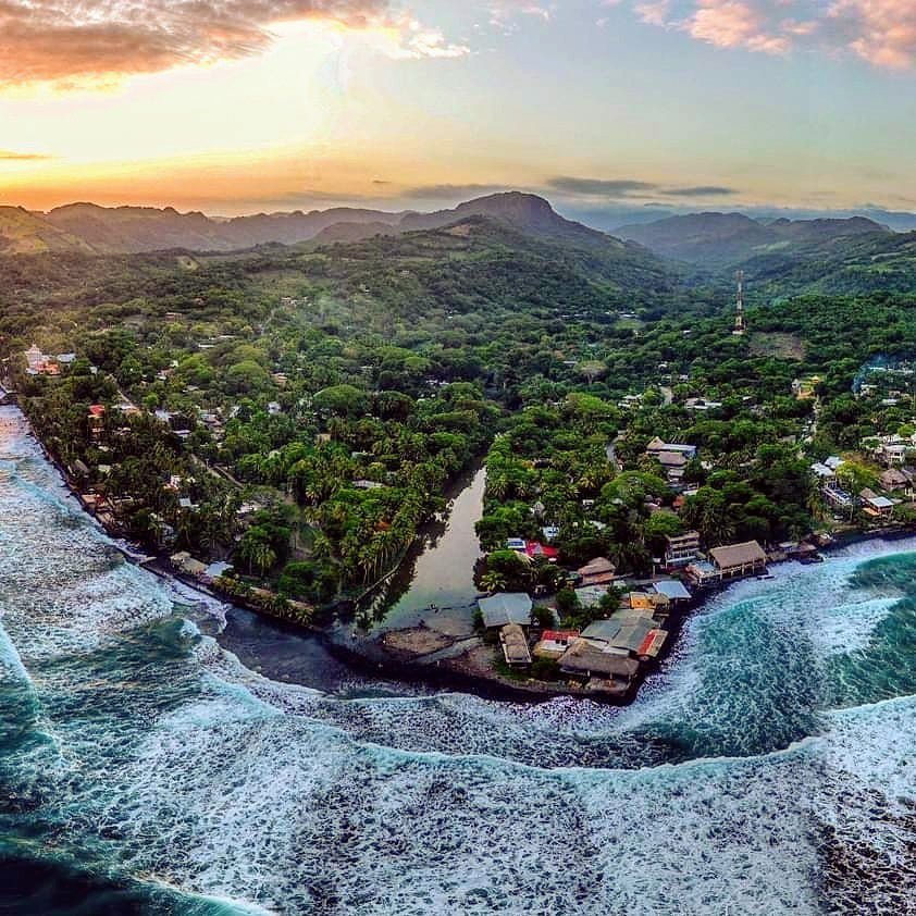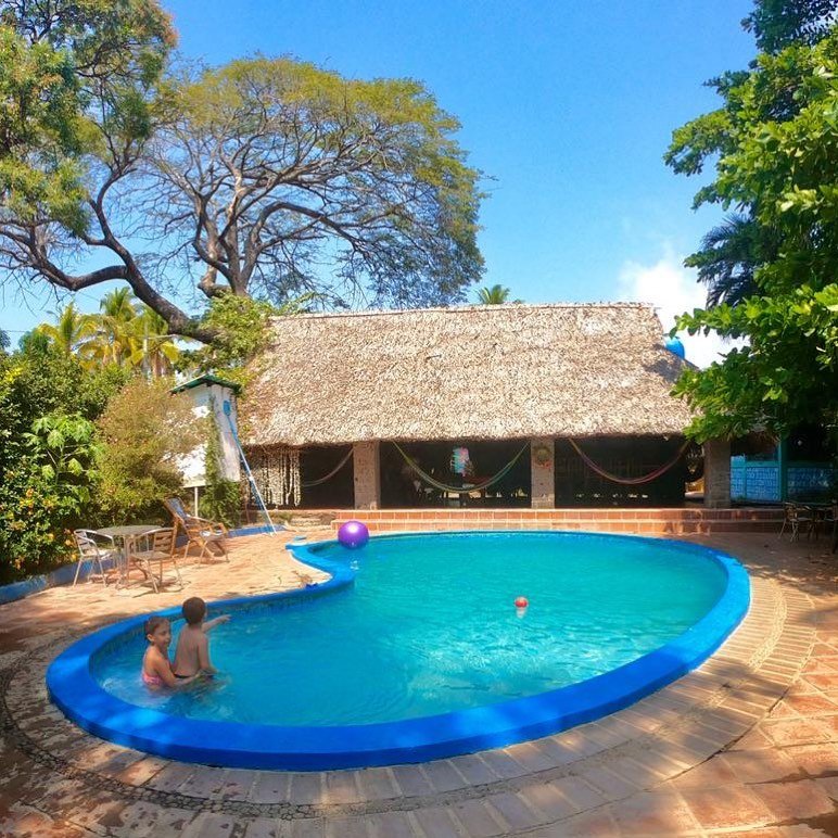 Horizonte Surf Camp sits on the volcanic black sand beaches of El Zonte, El Salvador, offering surf lessons, yoga sessions, and guided tours to nearby volcanoes and hot springs.