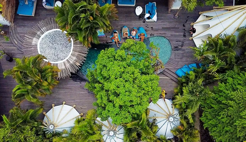 Kima Surf Camp Seminyak brings authentic Balinese charm to a tropical garden setting just steps from 6 kilometers of beach breaks. With over 20 years of experience, this established surf camp offers twice-daily guided sessions, free yoga, and accommodation ranging from budget dorms to deluxe suites.