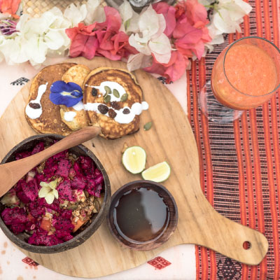 Located on the highest point of the property with more than 180 degrees ocean view overlooking the lush forest valley. Accommodates 2 people with a queen sized bed and mosquito net. Features a private bale which can be transformed into an extra bedroom. The outdoor panoramic toilet is something you will not forget. Includes ocean and forest views, private bathroom with solar heated shower, spacious balcony, compost toilet, ceiling fan, cupboards, chill out sofas, and drinking water with tea and coffee station. Baby cot available upon request.