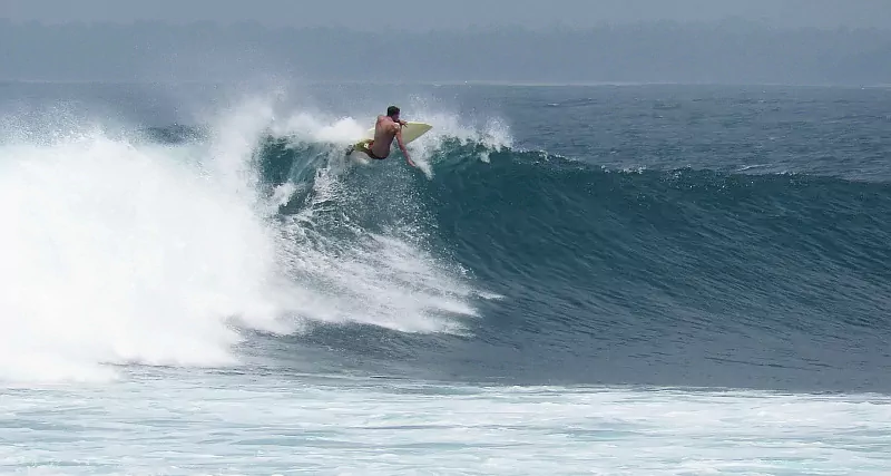 Lovina Krui Surf Camp is an Indonesian-owned beach resort located right on Tanjung Setia Beach in the Krui area of South Sumatra. Just a 2-minute stroll from the world-class reef break Ujung Bocur, it offers the perfect base to surf and explore the wave-rich Pesisir Barat coastline. Founded in 2012 by local couple Yoris and Fransiska, the camp provides comfortable air-conditioned rooms ranging from twin rooms to family bungalows, a swimming pool, and genuine Indonesian hospitality.