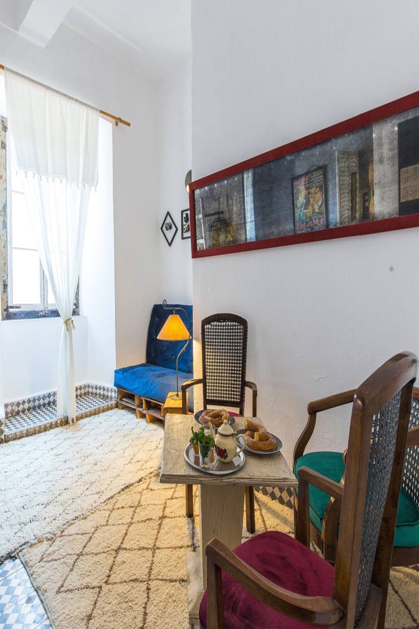 Accommodation options are spread across Essaouira and nearby villages. In the historic medina, guests can stay in L'Horloge, a bright apartment in a 17th-century riad just minutes from the beach. The Loft offers more space for groups of up to six, with two bedrooms and authentic Moroccan decor. Further from town, Diabat village provides a peaceful setting in the village made famous by Jimi Hendrix, while Chez Laila offers a local family-home experience just 10 minutes away.