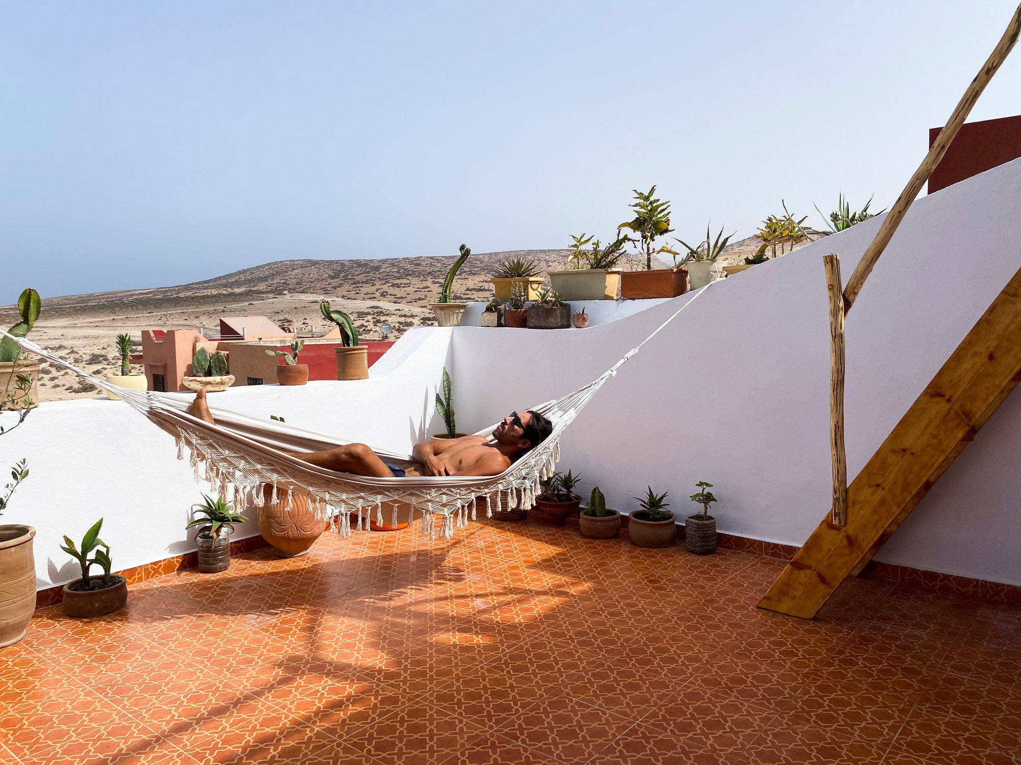 Welcome to the salty life at Awa Surf Camp, a laid-back surf retreat in Imsouane, Morocco. The camp was built by founders Said and Liz with their own hands, creating an authentic space where surfers from around the world come together. The main surf spot is The Bay, Africa's longest right-hand wave, perfect for longboarding and learning to surf. For more advanced surfers, Cathedral offers a faster, shorter wave nearby.