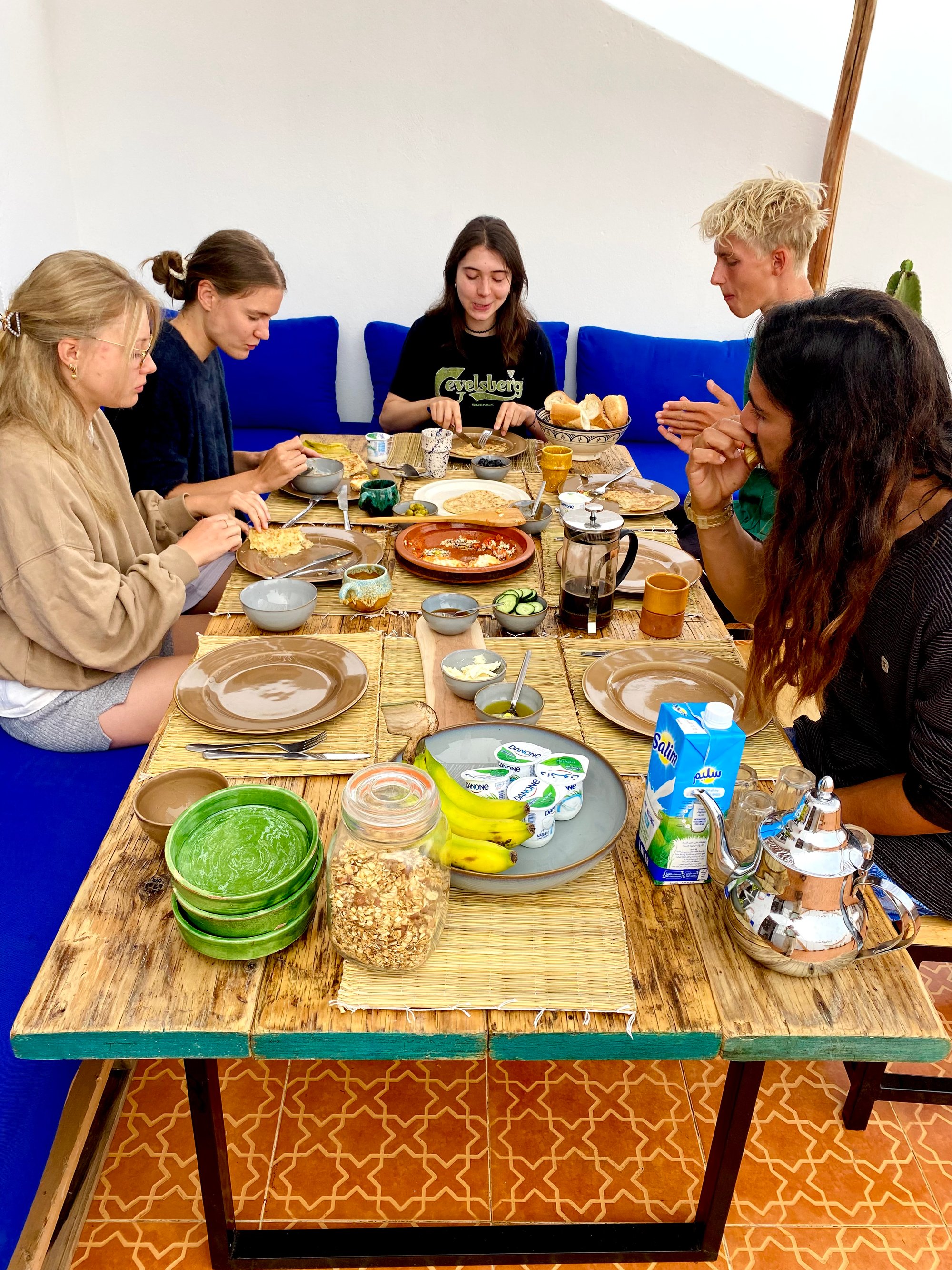 Additional activities include yoga classes with instructor Elena, trips to Essaouira, surf skate lessons, sandboarding in the dunes, and visits to Paradise Valley. The team is passionate about creating a welcoming atmosphere where guests feel at home from day one.