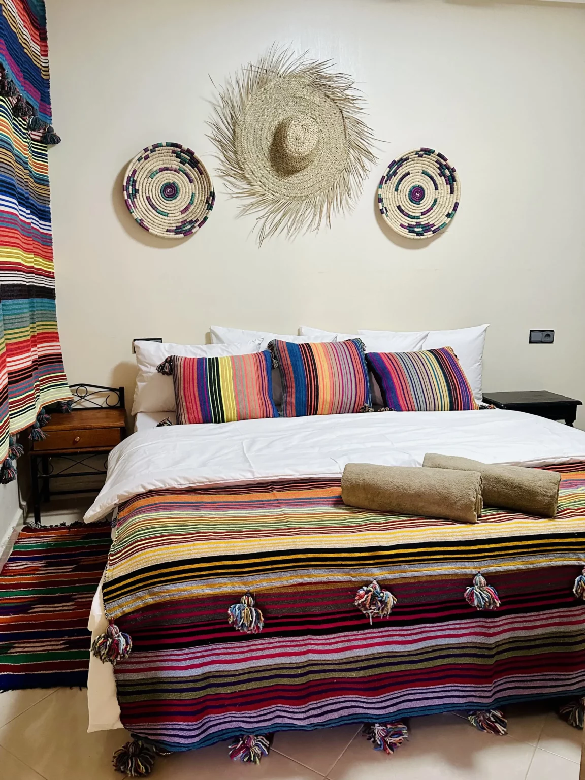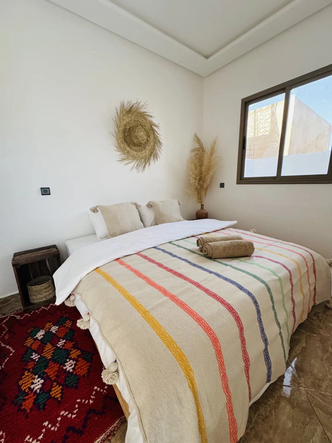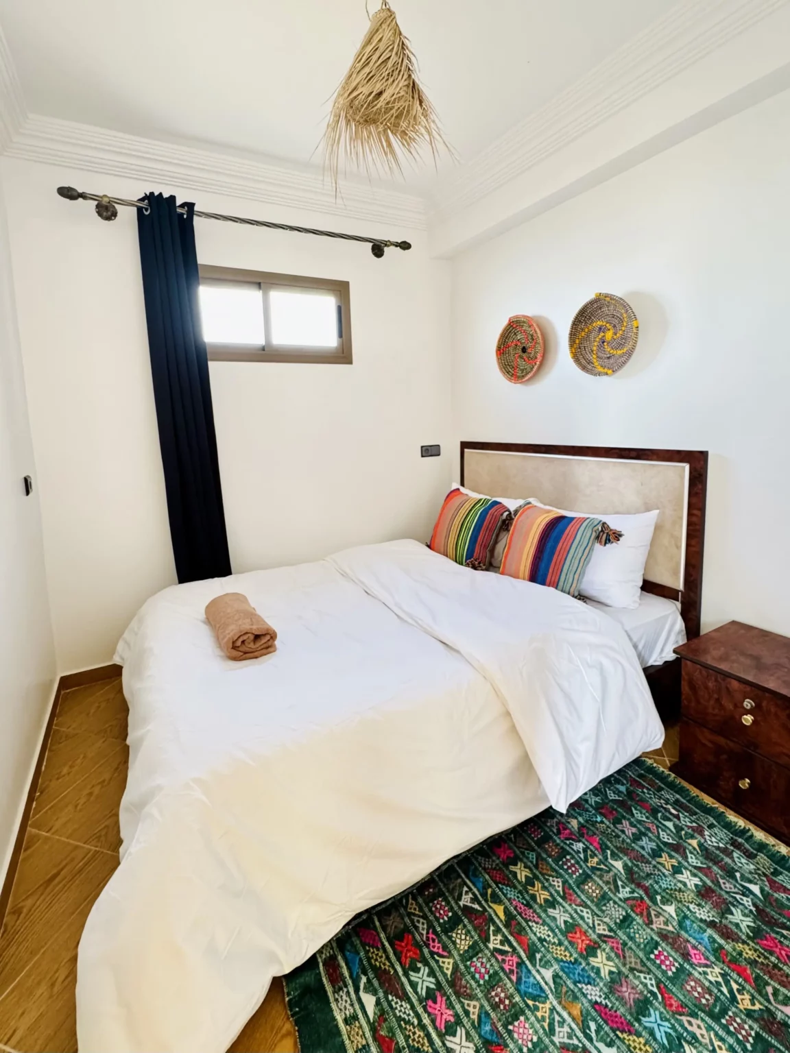 The camp occupies a traditional Moroccan building across four floors with 7 private rooms and 2 dormitories, accommodating up to 24 guests. At the top sits the heart of Local - two rooftop terraces where guests gather for meals, sunset sessions, and yoga classes. The design keeps things simple and calming, blending Moroccan tradition with a surfer's need for relaxation after busy days in the water.