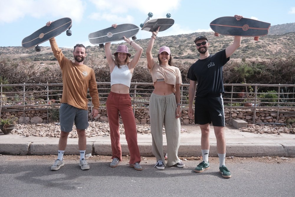 All packages include home-cooked Moroccan meals - start the day with traditional msemmen (Moroccan pancakes) and local coffee on the terrace, and finish with tagine dinners prepared by the team. Beyond surfing, guests can try sandboarding in the nearby dunes, yoga sessions on the rooftop, surf skating through town, and sunset sessions with music and campfires.