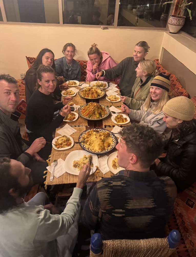 Meals are prepared with fresh local ingredients. Expect Moroccan classics like tagine, couscous, and grilled seafood alongside healthy international options. The camp accommodates vegetarian, vegan, halal, and gluten-free diets on request.