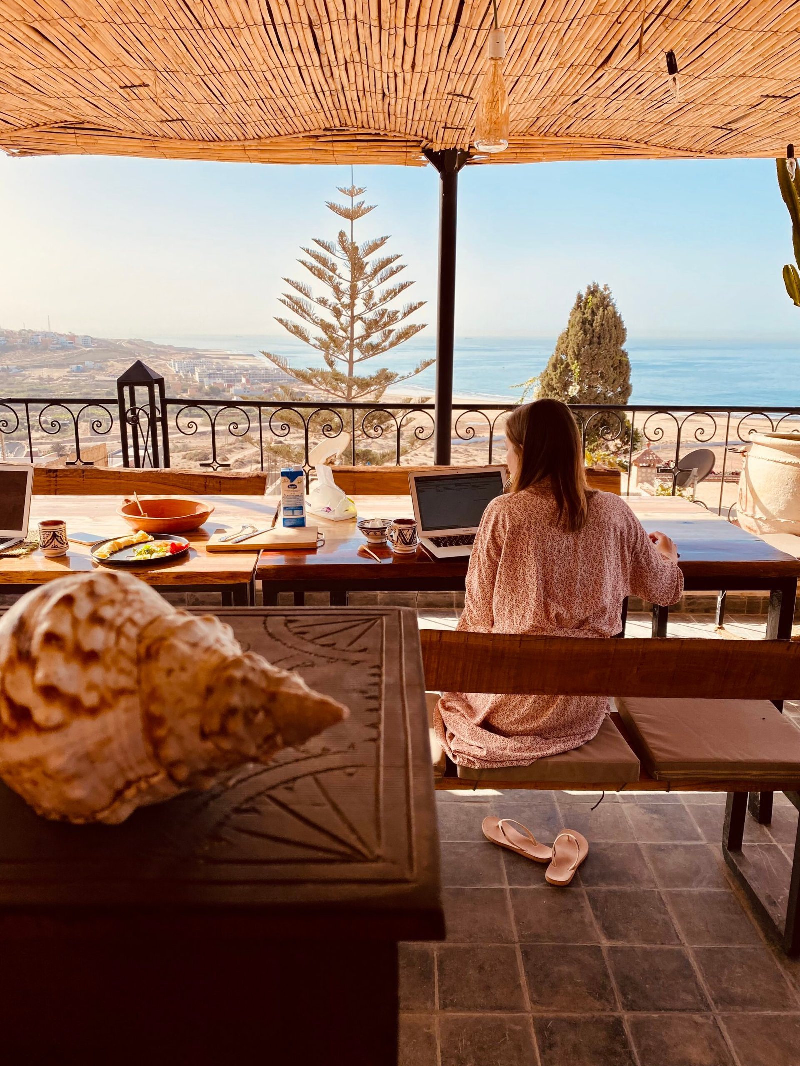Atlas Wonders occupies a traditional Moroccan building in Tamraght village, converted into a surf house with 24 guest capacity. The setup balances productivity with adventure through a combination of coworking spaces, a rooftop terrace with ocean views, and proximity to world-class surf breaks like Banana Point and Anchor Point.