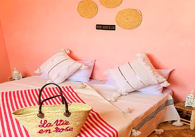 Friendly Moroccan surf camp in Tamraght, between Agadir and Taghazout, offering surf coaching, yoga retreats, and traditional hospitality. With 7 rooms, a pool, panoramic terrace, and just a 5-minute walk to Crocro beach, it is ideal for surfers of all levels seeking authentic Moroccan surf culture.