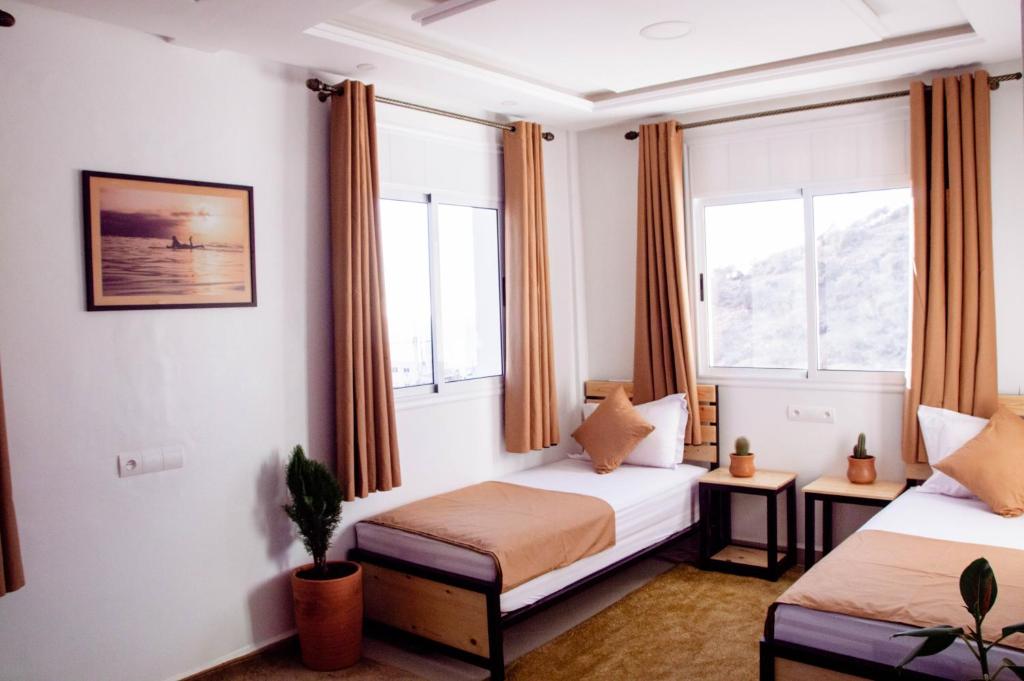 A laid-back surf hostel in the heart of Taghazout, Morocco, with a spacious rooftop terrace, clean rooms, and easy access to some of the country's best surf breaks. Five minutes on foot to Taghazout Beach.