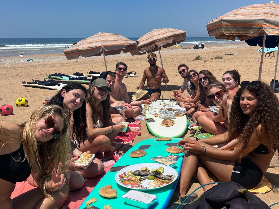 The team, led by instructor Ayoub who grew up surfing the local breaks, brings genuine passion for both surfing and sharing Moroccan hospitality. Vegetarian, gluten-free, and lactose-free options are available for meals.