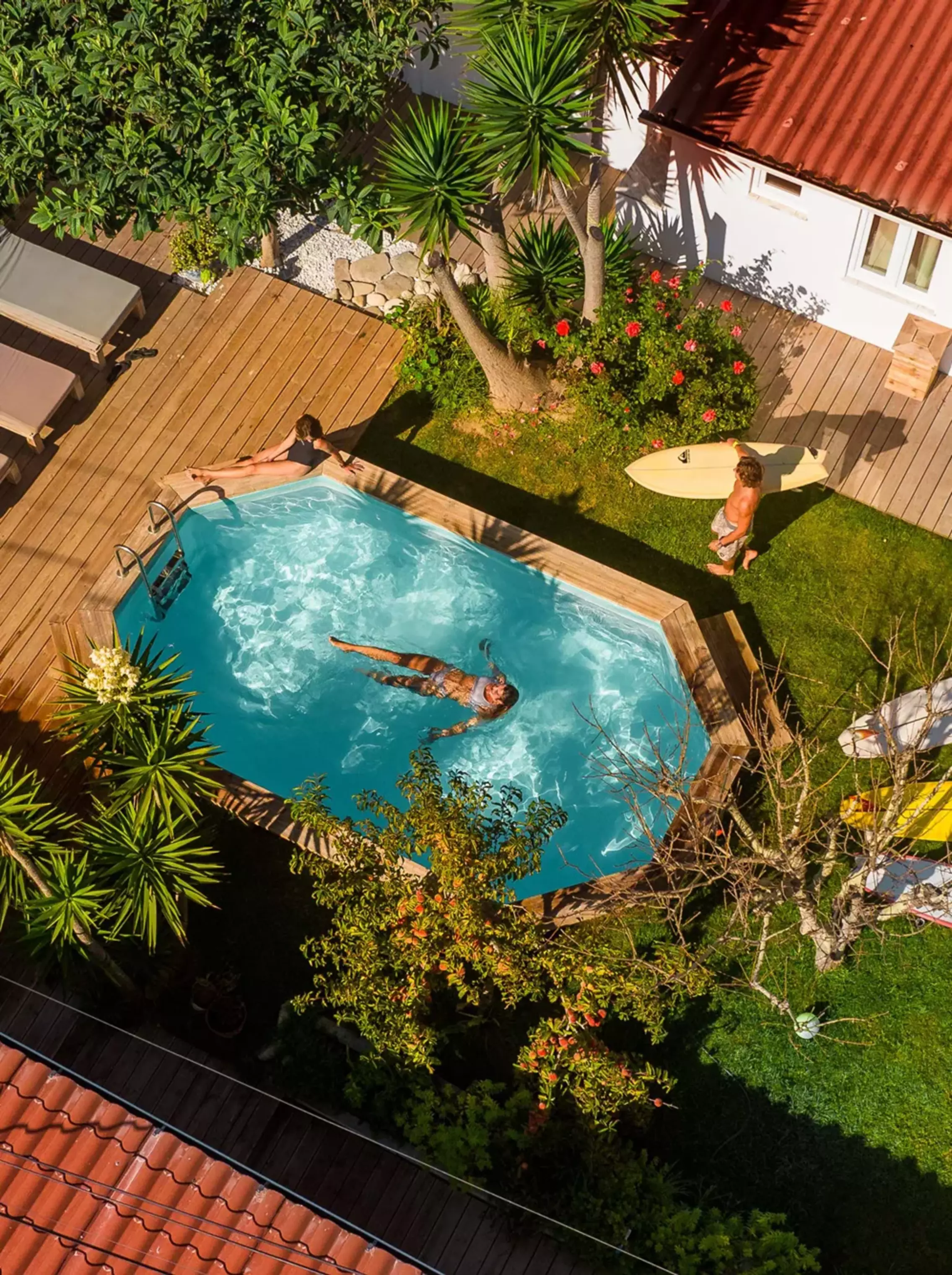 Puresurfcamps Surfcamp Peniche offers completely renovated accommodation in Baleal with pool and indoor gym. From โฌ489/week including breakfast, 4 dinners, yoga, cross-training, and wine tasting.