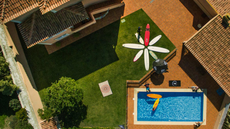 Santa Cruz Surf Lodge positions you between Ericeira and Peniche with 30+ surf spots accessible. Pool, garden, dual-certified instructors with video coaching—packages from €199/week include yoga, breakfast, and bikes.