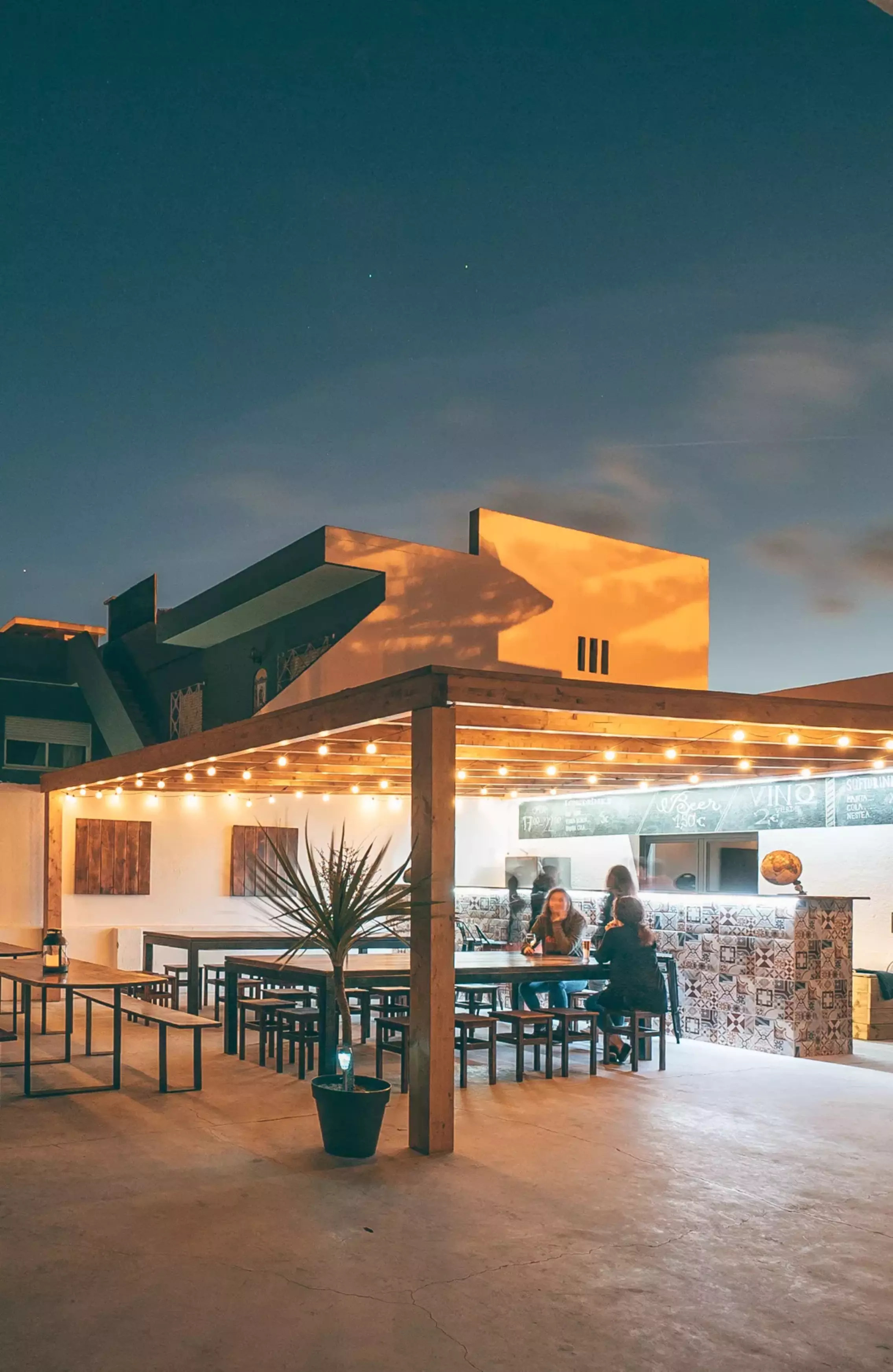 Puresurfcamps Surfhouse Caparica puts you 150m from Costa da Caparica's breaks with Lisbon 20 minutes away. From €359/week including breakfast, 5 dinners, yoga, cross-training, and wine tasting—stylish outdoor bar and sea-view yoga room.