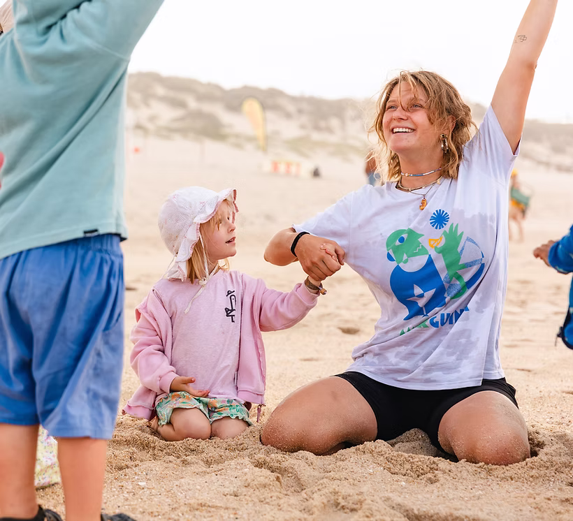 Family-friendly surf holiday with nanny service and kids animation included. Designed for outdoor-loving families so parents can enjoy surf and yoga lessons while kids are entertained and cared for.