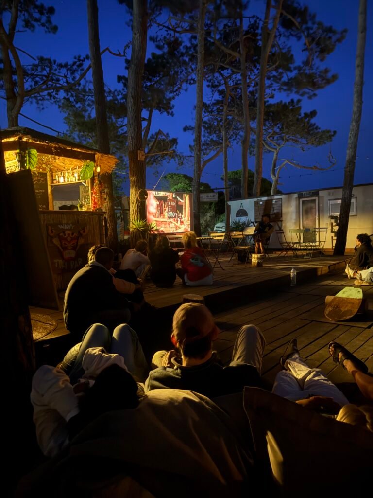 Wavy SurfCamp offers glamping-style accommodation in Sagres with 4.8-star Google rating. Over 10 years building a surf community—from €679/week with surf lessons, tiki bar, surfskate bowl, and on-site restaurant.