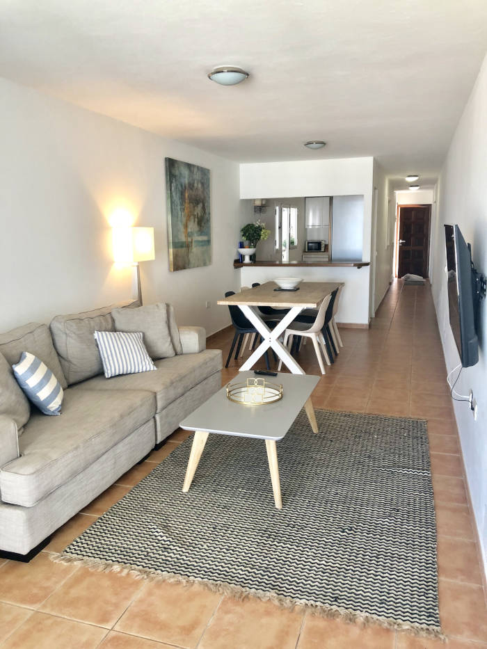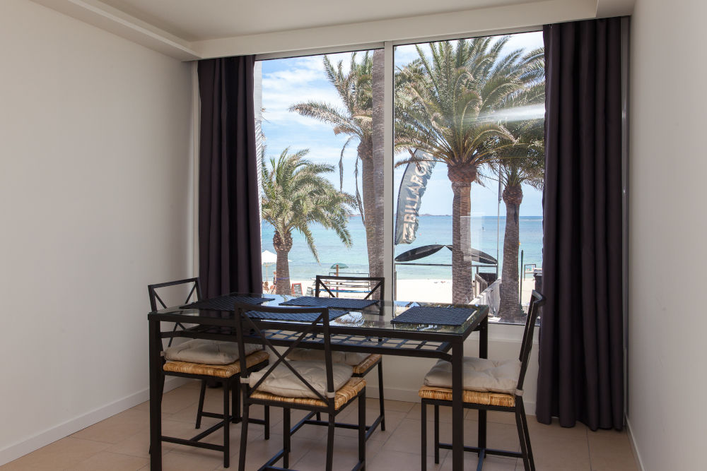 Accommodation spans the full range from budget to comfort. The "beach house" area contains shared dorms and a private suite with ensuite bathrooms, shared kitchen, and communal living space with TV. Upstairs, oceanview studios offer more privacy with their own kitchens. Ground-floor and first-floor apartments suit couples, friends, or families. The star of the lineup is the 4-bedroom duplex spread over two floors with a private terrace and direct beach access.