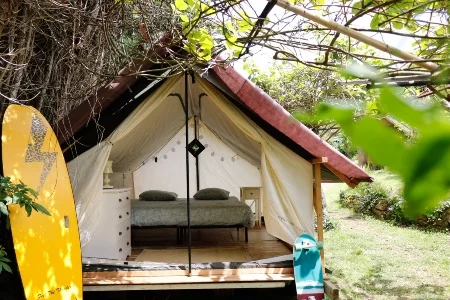 Biosurfcamp is an eco-friendly surf camp in Suances, Cantabria - one of the most consistent surf spots in northern Spain. With over 15 years of experience and a 4.9 Google rating, they combine certified surf instruction with organic cuisine, yoga sessions, and a strong commitment to sustainability. Recommended by National Geographic in 2024 as the only Cantabria surf camp among Spain's best, they offer all-inclusive packages from 3 to 7 nights in unique glamping accommodations including wooden bungalows, a handbuilt geodesic dome, and a private yurt.