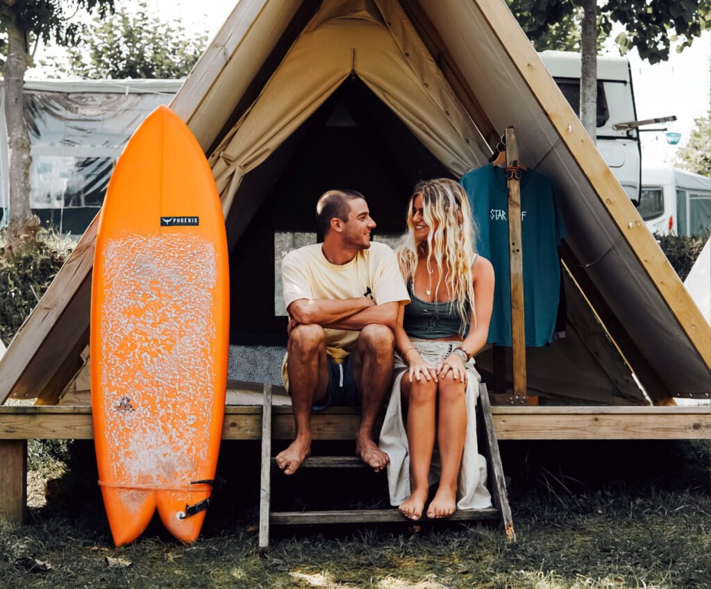 Iconic tipi tent for two with a unique camping experience. More headroom than bell tents with the distinctive cone shape. Upgrade cost: 100 euros per week. Bedding add-on available.